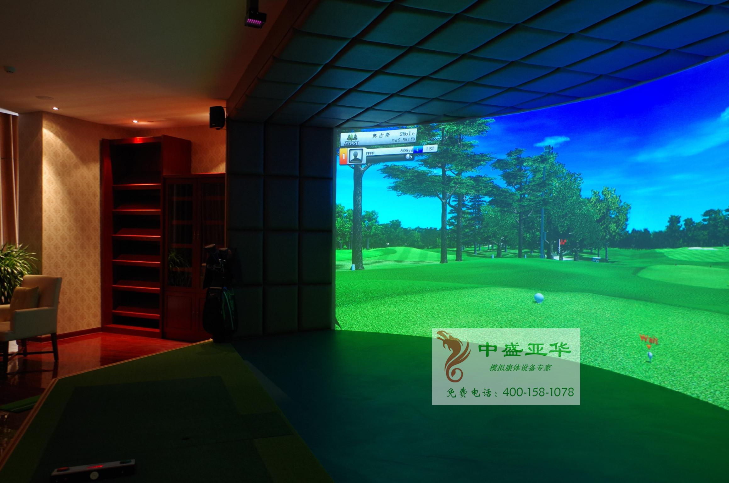 >>想了解更多室內高爾夫詳細解決方案,請致電:139-1188-7739 . 010-81581861 從使用角度出發,全方位的結合客戶需求,打造屬于您自己的高爾夫模擬器! 中盛模擬高爾夫打造的每一個案例都是精品!